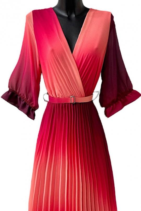 Red print belted dress